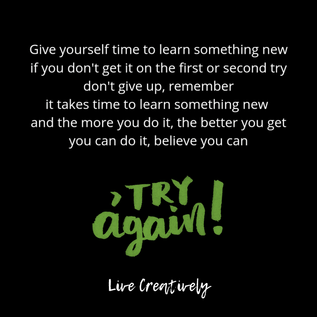 It takes time to learn something new, and the more you do it, the better you get. Remember to be patient with yourself, giving yourself time to get used to the “something new” you are learning.